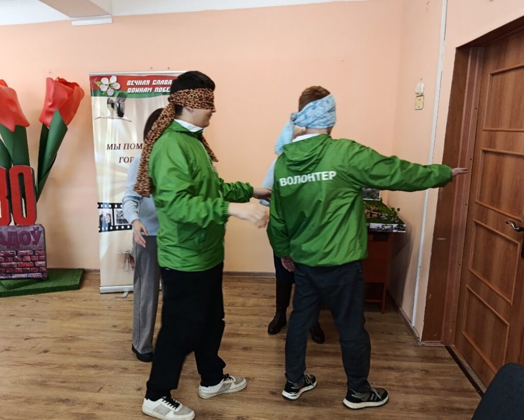 В рамках месячника «Человек с белой тростью» специалистами ТЦСОН Ивьевского района для членов волонтерского отряда «Твори добро» Ивьевского государственного колледжа и волонтёров «серебряного» возраста был организован интерактивный тренинг по взаимодействию и коммуникации с инвалидами по зрению и оказанию ситуационной помощи.