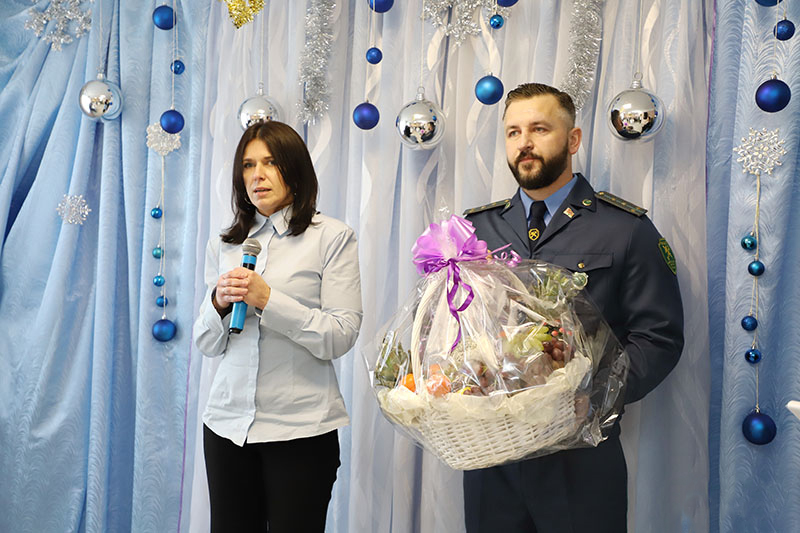 Гости передали учреждению подарочный сертификат на приобретение холодильника и фруктовую корзину. В праздничной программе прозвучали музыкальные номера сотрудников Гродненской региональной таможни Оксаны Войдель и Павла Толочко. К поздравлениям присоединились солистка Вероника Свидрицкая, Дед Мороз и Снегурочка, которые пожелали всем здоровья, оптимизма и радости.