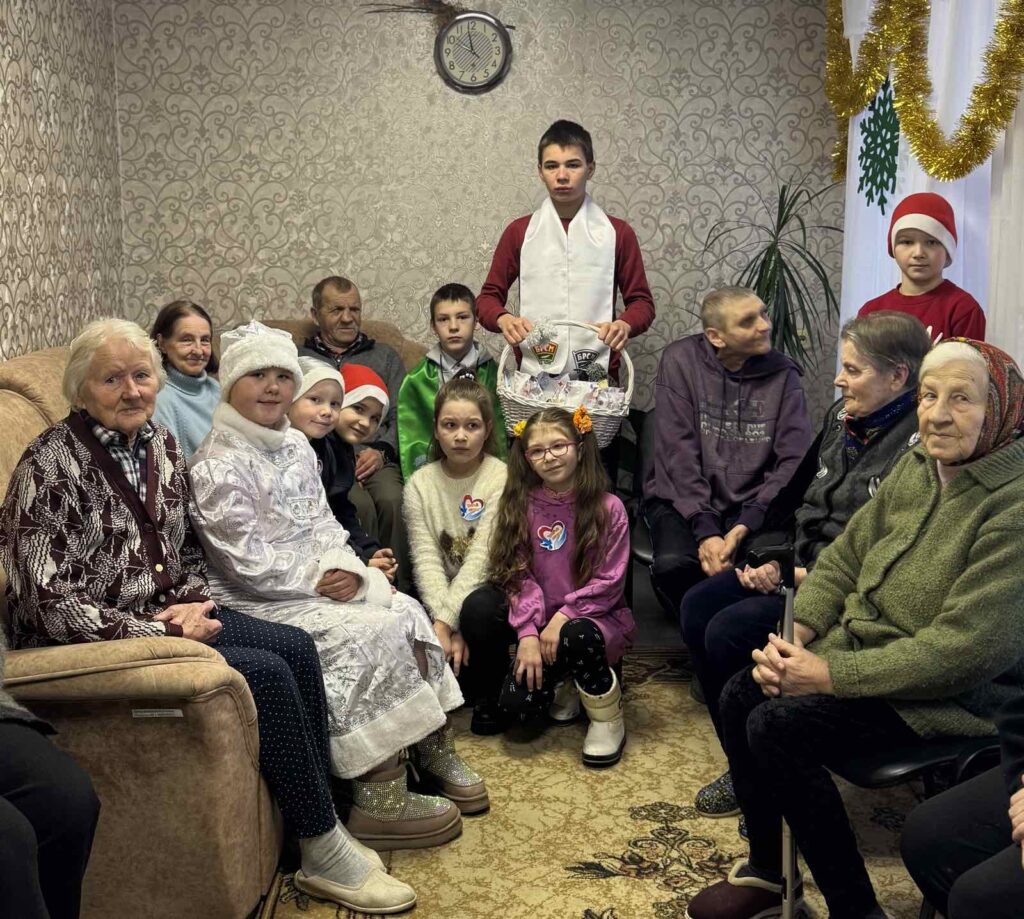 Ученики ГУО «Жупранская СШ им. Ф.К. Богушевича» сегодня провели в отделении круглосуточного пребывания для граждан пожилого возраста и инвалидов ТЦСОН «Ошмянского района» акцию «Сказочная мастерская добрых дел» — с мини‑спектаклем, стихами, песнями и вручением поделок.