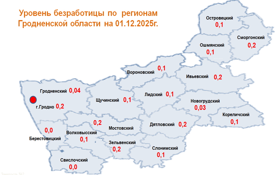 Уровень зарегистрированной безработицы составил (по оценке) 0,1 процента к численности экономически активного населения и во всех регионах области не выходит за рамки прогнозного.