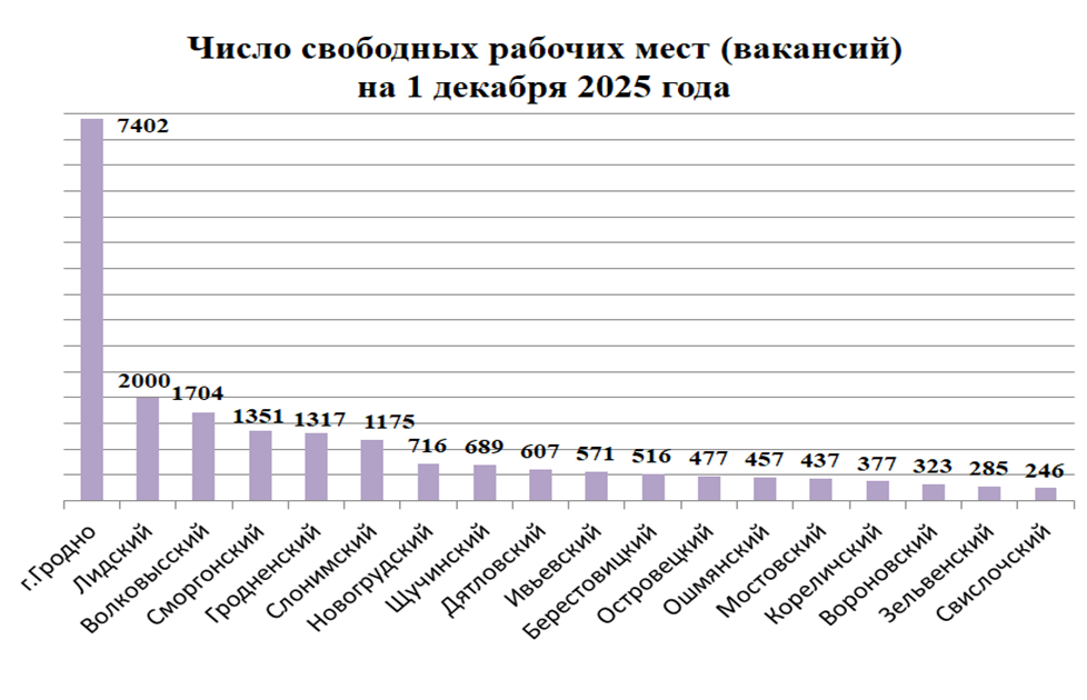 Нанимателями на 1 декабря 2025 года заявлены сведения о наличии 20650 свободных рабочих мест, что на 6,7 процента больше, чем на 1 декабря 2024 года (19348). Спрос на работников по рабочим профессиям составил 69,2 процента от общего числа вакансий (на 1 декабря 2024 г. – 65,7 процента).