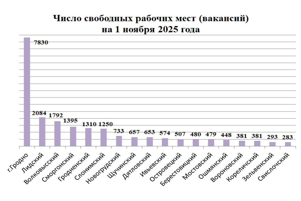 Нанимателями на 1 ноября 2025 года заявлены сведения о наличии 215300 свободных рабочих мест, что на 9,8 процента больше, чем на 1 ноября 2024 года (19610). Спрос на работников по рабочим профессиям составил 69,6 процента от общего числа вакансий (на 1 ноября 2024 г. – 65,6 процента).