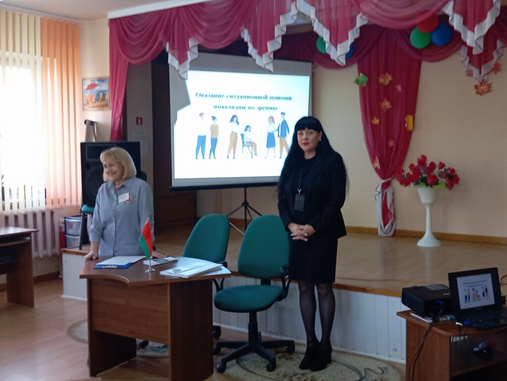 В рамках месячника «Человек с белой тростью» 30 октября 2025 г. в отделении социальной реабилитации, абилитации инвалидов состоялось практическое занятие «Оказание ситуационной помощи инвалидам по зрению», которое было организовано ОО «Белорусское товарищество инвалидов по зрению» совместно с ГУ «ТЦСОН Щучинского района».