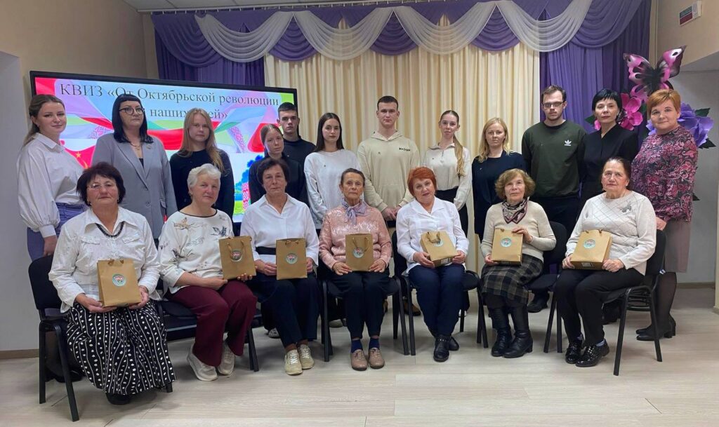 В канун Дня Октябрьской революции в ЦСОН Кореличского района состоялся КВИЗ поколений «От Октябрьской революции до наших дней». В интеллектуальных соревнованиях встретились команды посетителей отделения дневного пребывания для граждан пожилого возраста, рожденные в СССР и дети 21 века, активисты БРСМ первичных организаций г.п.Кореличи.