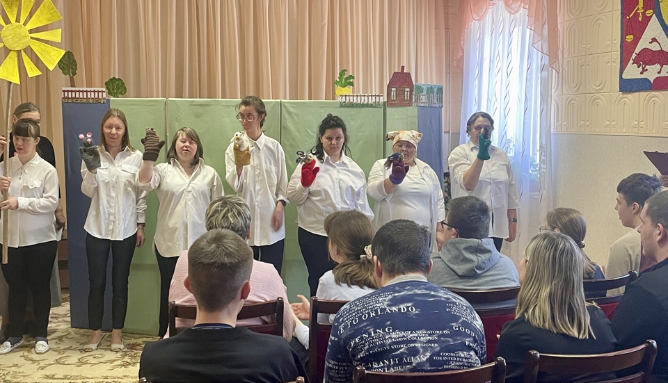 23 апреля 2026 года в отделении социальной реабилитации, абилитации инвалидов (ОСРАИ) ГУ «ТЦСОН Ошмянского района» состоялся день открытых дверей для выпускников, их родителей и педагогов Центра коррекционно-развивающего обучения и реабилитации (ЦКРОиР). Для гостей был представлен кукольный театр по мотивам русской народной сказки «Репка».